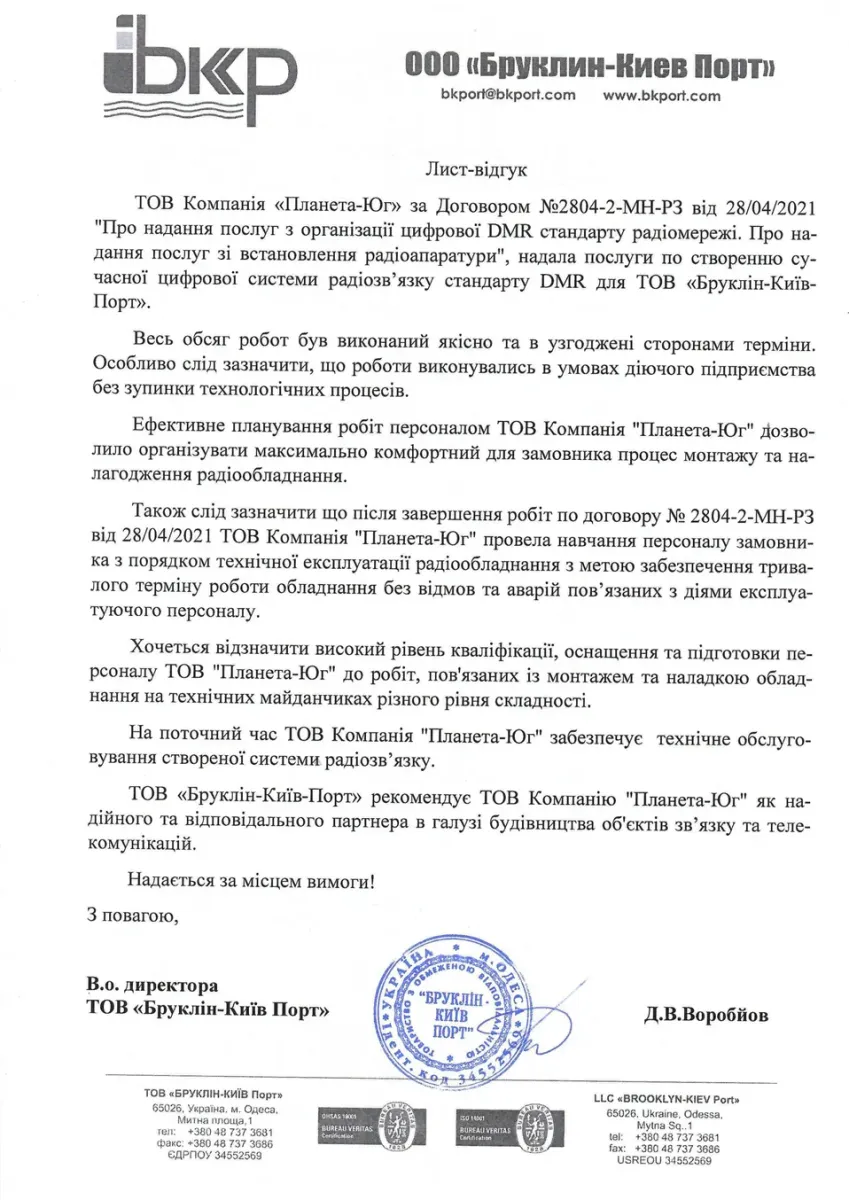 Компанія «Планета-Юг» будує сучасні системи цифрового радіозв’язку, що забезпечують якісний та надійний зв’язок у будь-яких умовах.