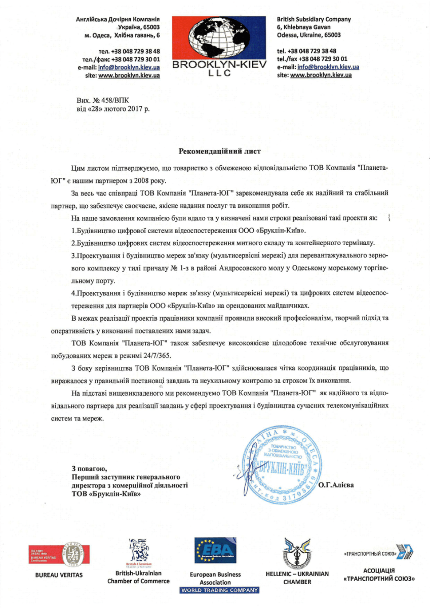 Компанія «Планета-Юг» виконує роботи з технічного обслуговування сучасних телекомунікаційних систем у режимі 24/7. Час першої реакції на звернення Замовника не перевищує 1 годину. Час виконання відновлювальних робіт не перевищує 24 години з виявлення технічної проблеми. Нашими клієнтами з послуг аутсорсингу є «Укравтодор», ТОВ «Бруклін-Київ» та інші.